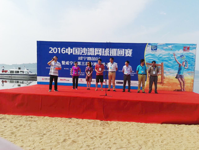 2016年全国沙滩网球巡回赛嘉鱼站比赛于6月10日在风景秀丽的嘉鱼三湖连江沙滩浴场隆重举行。本次比赛由中国网球协会主办,湖北省网球协会和咸宁市体育局承办,是继2014年中国首届沙滩网球赛在武汉成功举办后再次举办的全国沙滩网球赛,共有来自全国各地的96名选手参赛,其中有8名选手来自多宝在线开户体育学院。经过一天的激烈对抗,我校李爱国、梁赞斌老师在半决赛中战胜来自武汉的上届冠军,并与我院学生帅成杰、裴阳清会师。决赛成为了我院师生的表演,比赛中精彩不断,掌声不停,最终老师战胜学生夺得双打冠军,我校另一队选手周嘉龙、宇文骏帆获双打第五名。