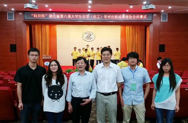 “该制备法操作简单、产率高、经济、环保,在学术研究领域较具价值,在生物、化学、药学、医学等应用领域有实用前景,受主办方专家好评”,指导老师孙绍发教授介绍。另由李月生、杨绪红、彭艳红三位老师分别指导的大学生俞丽丽、高格、金娟娟、谢志焱的创新成果获3个二等奖、1个三等奖。